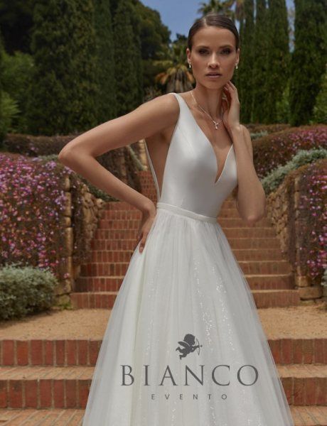 Šaty značky Bianco Evento se dají objednat s kratší dodací dobou, prodejní ceny jsou také příznivější - od 9.900 do 15.900,- Kč.